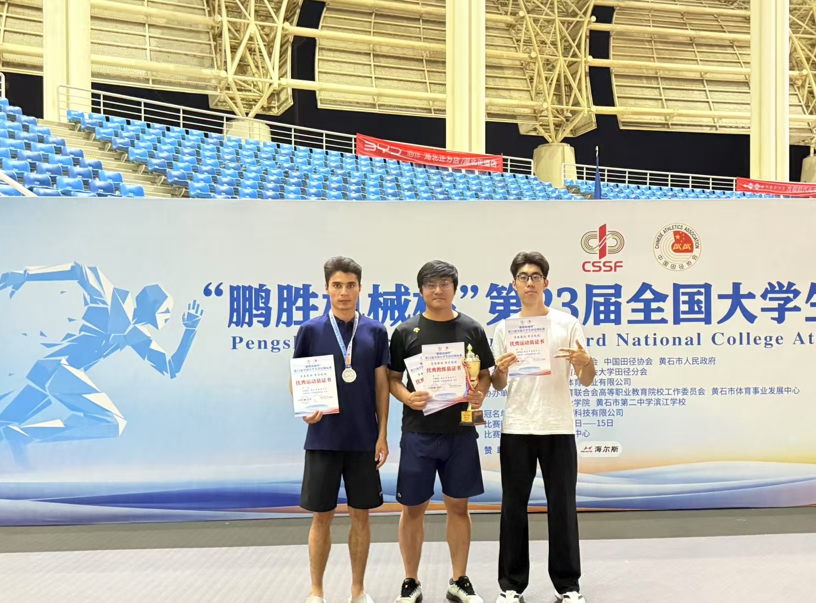 由中国学生体育联合会、中国田径协会主办,中国学生体育联合会大学分会执行的第23届全国大学生田径锦标赛于8月10日至15日在湖北省黄石市隆重召开。象城娱乐官网田径健儿奋勇拼搏,挥洒汗水,夺得两银一铜,一个第六名,一个第八名,接力第五名的优异成绩。在213所普通生院校中取得了男子团体第四名的优秀成绩,北方工大也是连续两年冲进团体四强。