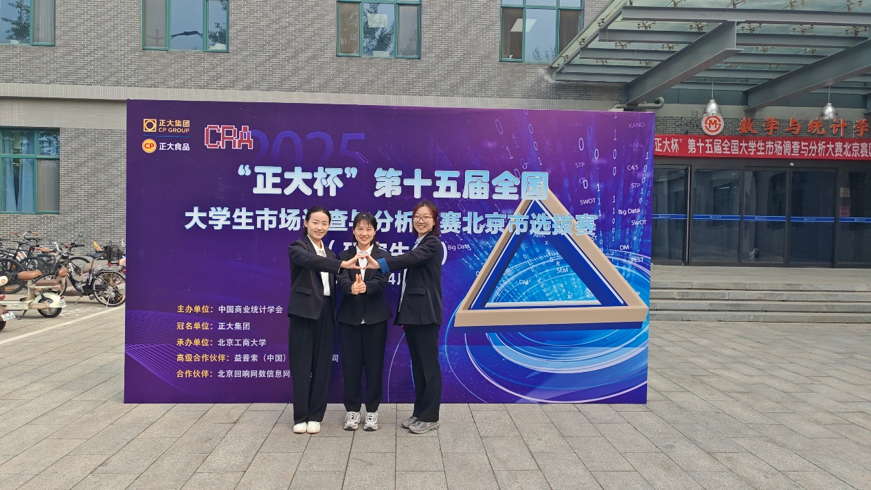 4月20日,”正大杯”第十五届全国大学生市场调查与分析大赛北京市选拔赛(研究生组)圆满落幕。象城娱乐官网14名学生组成的3支代表队成功参赛。经过激烈的角逐,有1队作品被推荐国家三等奖,1队获北京市一等奖、1队获北京市三等奖。此前,已有2队作品从企业命题通道直接晋级国赛(全国19队,北京市2队)。
