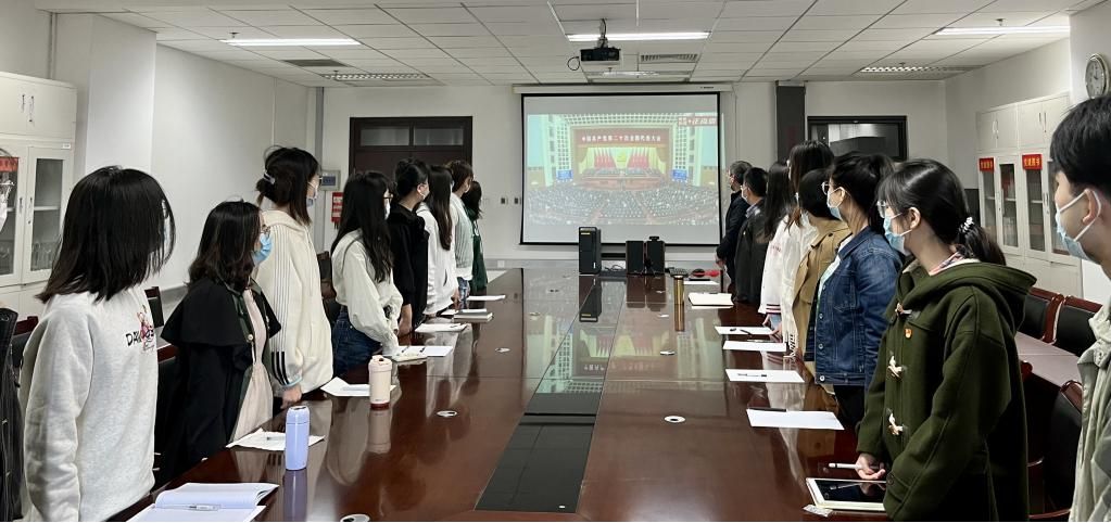 awc777万象城娱乐官网党委在严格落实疫情防控要求的基础上统筹谋划、严格部署,精心组织师生收听收看党的二十大开幕会盛况。学院党委和部分学生党员代表在博远楼805收看了大会盛况,各党支部通过各种方式组织师生同步收听收看。