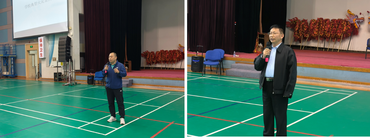 在安全教育单元,官鹏老师结合部分高校发生的典型火灾案例,根据大学校园用火用电、实验室等常见火灾风险点,向大家详细分析了大学校园火灾的起因及存在的隐患,做了警示教育,并就生活中常见火灾扑救方法、火灾逃生注意事项以及如何自救等相关内容进行了详细讲解,师生们听得认真专注,时不时提问互动。