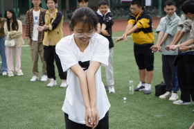 第三个游戏“多姿多彩过国庆”。同学们使出浑身解数,有的翻跟头,有的俯卧撑,各展绝活,在展示自我的同时也加深了同学们间的默契。