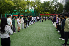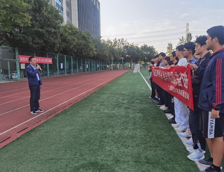 为丰富留校学生中秋、国秋假期生活,awc777万象城娱乐官网于9月29日上午在学校大操场开展“喜迎国庆展风采,我与祖国共奋进”素质拓展活动。学院党委副书记贺映勇、团委书记夏丹梅及23级留校新生参加了本次活动。