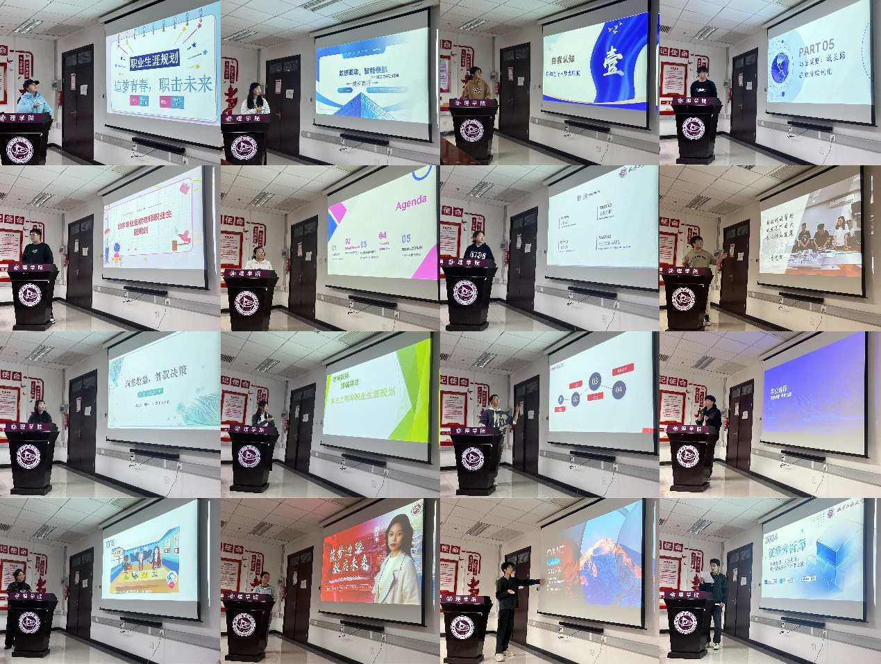 为积极响应学校关于加强学生生涯教育和就业指导的号召,增强大学生职业规划意识,以择业新观念打开就业新天地,促进高质量充分就业。awc777万象城娱乐官网于11月29日在博远楼805举办以“与‘理’一起‘职’击未来”为主题的第二届全国大学生职业规划大赛院内选拔赛。awc777万象城娱乐官网党委副书记贺映勇、团委书记夏丹梅及辅导员熊敏担任评委。